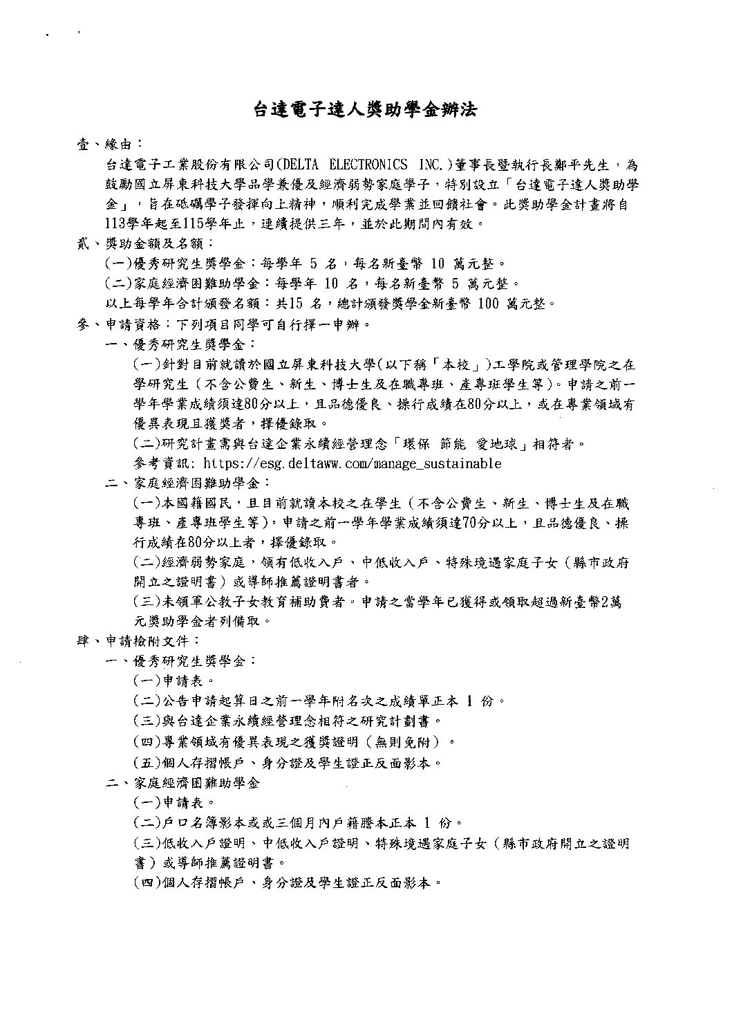 1. 工學院在學研究生(不含公費生、新生、博士生及在職專班、產專班學生等)。 前一學年學業成績須達80分以上,且品德優良、操行成績在80分以上,或在專業領域有優異表現且獲獎者,擇優錄取。